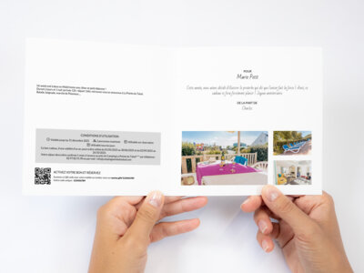 Ce bon cadeau, d'une validité d'un an, pourra être utilisé du 01/05/2025 au 30/06/2025 et du 02/09/2025 au 26/10/2025.