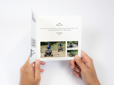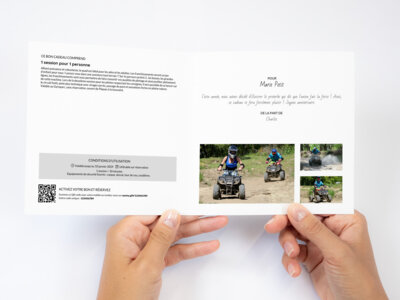 Alliant puissance et robustesse, le quad est idéal pour les ados et les adultes. Les franchissements seront un jeu d'enfant pour vous ! Lancez-vous dans une aventure tout terrain !! Sur le parcours prairie 2 , les bosses, les grandes lignes, les franchissements vont vous permettre de faire ressortir vos qualités de pilotage et ainsi profiter pleinement de cette machine. Lors de la deuxième session pour les pilotes respectant les consignes, il sera possible de se lancer sur le circuit forêt, piste plus technique avec virages serrés, passage de pont et sensations fortes en pleine nature.
